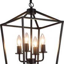 AMZASA UL Listed Black Industrial 4 Light Lantern Chandelier Ceiling Light Fixtures Farmhouse Metal Cage Rustic Geometric Pendant Light for Kitchen Island Entryway Dining Room Stairs and Hallway